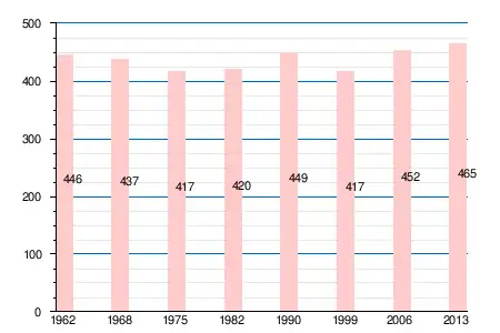 Население коммуны в 2011 году составляло 462 человека[7], в 2012 году — 460 человек[8], а в 2013-м — 465 человек[6].