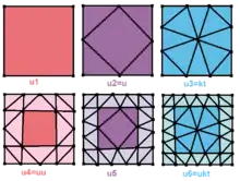 kda = kj dbd = db | v+e+f | 6e | 4e | Триангуляция с добавлением вершин в центрах граней и рёбер. |