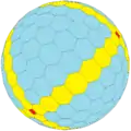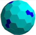 Усечённый икосаэдр, tI или zD, являющийся многогранником Голдберга G(2,0), создаёт дополнительные многогранники, которые ни вершинно-, ни гранетранзитивны.