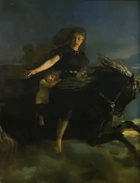 ![]() Нотт скачет на коне Хримфакси. Петер Николай Арбо, XIX век | |