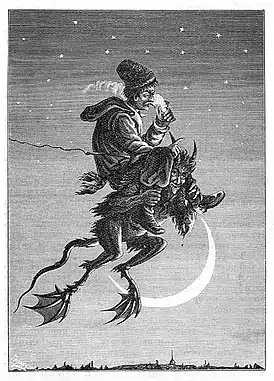 - По прибытии обратно в деревню Вакула высек чёрта хворостиной — это напоминает образы святого Никиты Бесогона[4] и великомученицы Марины Антиохийской[5].