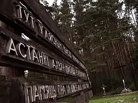 ![]() Мемориальна доска в Куропатах в память о расстрелянных. Фото 2007 года | |