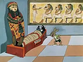 Заяц посещает музей, в котором Волк пытается его поймать, однако тот, зачастую находя защиту в экспонатах, остаётся невредим.
