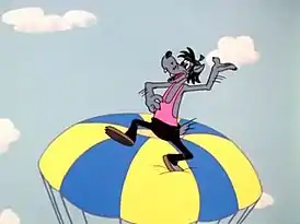 На лугу Волк, увидев забежавшего в самолёт с прочими парашютистами Зайца, следует за ним. Увлёкшись попытками поймать его, он выпрыгивает с остальными в момент полёта без парашюта, но приземляется благополучно.