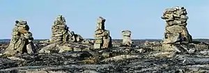 Инуиты торговали с викингами, заплывавшими сюда в поисках рыбы, получая от них металлические предметы[16]. Большинство историков считает, что название Маркланд, которое можно встретить в норвежских сагах, и есть остров Баффинова Земля[19][20][21]. Около 500 лет назад, во время очередного похолодания, инуиты оставили арктические широты и китовый промысел, перейдя на охоту на карибу и морских котиков — именно такими их застали европейские первопроходцы[16].