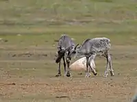 Растительность очень скудная: редкие ягодные кустарнички, лишайники, ива полярная, мхи.