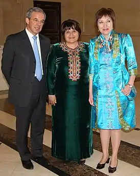 ![]() Акджа Нубердыева (в центре) со специальным представителем Парламентской ассамблеи ОБСЕ по Средней Азии Тьерри Мариани (слева) и председателем Комитета Парламентской ассамблеи ОБСЕ по делам экономики, науки, технологий и окружающей среды Розой Акназаровой (справа). 14 апреля 2015 года, Центр Парламентской ассамблеи ОБСЕ в Ашхабаде | |