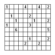- На каждом острове должно быть одно число, и размер острова в клетках соответствует этому числу.