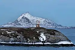 | Вид на третью по высоте вершину фюльке — Okshornet (1901 м) с вершины Окссколтен (1916 м) | Вершина горы Стетинн («наковальня богов») представляет собой плоское гранитное плато. | Тренставен на острове Санна в Трене. |