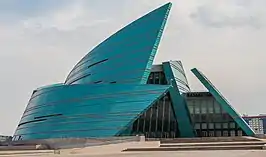 Сверху вниз и затем слева направо: центр Нур-Султана, концертный зал «Казахстан», Дворец мира и согласия, Назарбаев Университет, Евразийский национальный университет имени Л. Н. Гумилёва | |||||||