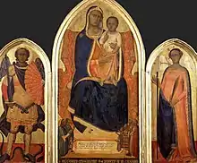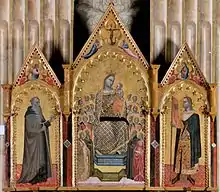 Аллегретто Нуци. Св. Августин со св. Николаем Толентинским и св. Стефаном. Городская пинакотека Бруно Молайоли, Фабриано