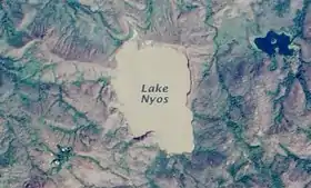 ![]() Вид на озеро Ньос с юга в 1986 году | |