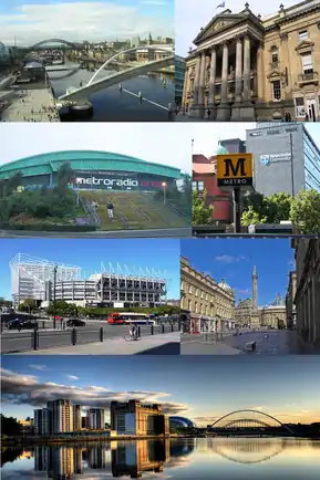 Городская агломерация Тайнсайд, в которую, кроме Ньюкасла, входят города Гейтсхед, Хебберн, Джарроу, Норт-Шилдс и Саут-Шилдс, находится по числу населения на седьмом месте в Англии.[4]