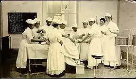 Будучи добровольцами, медсёстры были встречены с подобающим почётом и уважением как гости японской нации[42]. В течение следующих шести месяцев с мая по октябрь они работали в военном госпитале в Хиросиме, в госпитале для русских военнопленных в Мацуяме, в военно-морском госпитале в Куре, а также в полевых госпиталях в некоторых районах Кореи и Маньчжурии, инспектировали госпитальные корабли «Хакуаи-мару» и «Косаи-мару», перевозившие раненых в Японию[43][4][40][41][3]. Сестринская команда под началом Ньюком Макги принимала раненых с обеих сторон после битв на реке Ялу, в Порт-Артуре, при Ляояне[40].