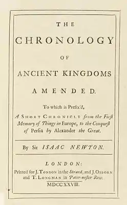 Последние годы жизни Ньютон посвятил написанию «Хронологии древних царств», которой занимался около 40 лет, а также подготовкой третьего издания «Начал», которое вышло в 1726 году. В отличие от второго, изменения в третьем издании были невелики — в основном результаты новых астрономических наблюдений, включая довольно полный справочник по кометам, наблюдавшимся с XIV века. Среди прочих была представлена рассчитанная орбита кометы Галлея, новое появление которой в указанное время (1758 год) наглядно подтвердило теоретические расчёты (к тому времени уже покойных) Ньютона и Галлея. Тираж книги для научного издания тех лет мог считаться огромным: 1250 экземпляров.