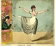 Блиставшая в Лондоне парижская танцовщица, из ложи заглядывают к ней под юбку герцог Куинсберри и епископ Даремский