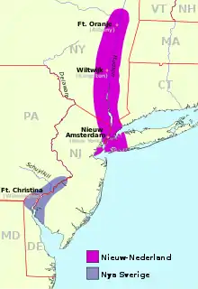 В 1610-х годах эти земли стали заселять голландцы, и территория вошла в состав колониального владения Новые Нидерланды. В конце 1630-х годов шведы создали на берегах реки Делавэр колониальное владение Новая Швеция. В 1655 году голландцы захватили Новую Швецию, но шведским колонистам была предоставлена широкая автономия.