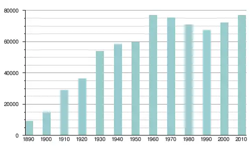 Динамика населения согласно переписи населения США с 1890 года[2].