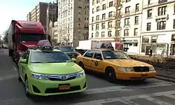 С 2013 года существуют также такси светло-зелёного цвета, которые не имеют права брать пассажиров на территории аэропортов, а также в Манхэттене южнее Восточной 96-й и Западной 110-й улицы.