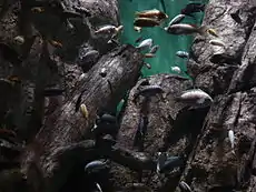 Озеро Ньяса имеет самую разнообразную экосистему среди пресноводных водоёмов мира; по разным оценкам, в нём живёт от 500 до 1000 видов рыб. В озере насчитывается более 500 видов рыб из 10 семейств, в том числе свыше 400 видов цихлид (Cichlidae) — 30 % от общего числа видов в этом семействе, при этом почти все виды являются эндемиками Ньясы (едё 28 эндемичных видов представляют другие семейства)[7]. Цихлиды занимают большинство экологических ниш озера. Озёрные цихлиды распределяются на две большие группы: пелагические, преимущественно хищные виды, живущие в толще воды вдали от берегов, и прибрежные, среди которых наблюдается богатое разнообразие форм, размеров, способов питания и поведения. Хотя видовое разнообразие пелагических цихлид также высоко по любым стандартам, но именно в прибрежных обществах оно достигает абсолютного максимума. Вблизи скалистых берегов озера на участке площадью 50 м² можно насчитать до 500 особей рыб 22 различных видов. Существуют виды и разновидности, эндемичные для отдельных частей озера или даже для отдельных бухт или участков побережья. Цихлиды являются базой озёрного рыболовства и обеспечивают питанием значительную часть населения Малави, некоторые виды представлены как декоративные аквариумные рыбы, которые продаются за границу.