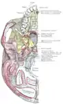 ![]() Сагиттальный срез черепа. Нёбная кость отмечена внизу слева. | |