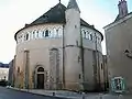 Является копией Храма Гроба Господня в Иерусалиме. Археологические исследования помогли определить этапы её эволюции с момента основания в 1040 году. Здание служило убежищем во время Столетней войны, поэтому имеются частично отреставрированные повреждения. В реликварии хранятся две капли крови Иисуса Христа. Эти реликвии являются объектом паломничества в течение многих веков.