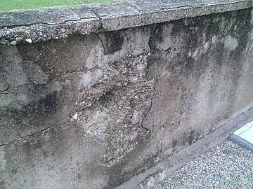 Следы немецких обстрелов на кладбищенской стене