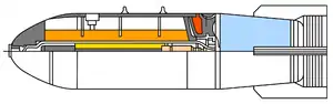 Через определенное время срабатывает взрыватель Б2, который подрывает инициирующий заряд. От срабатывания инициирующего заряда происходит детонация облака с образованием ударной волны большой мощности, которая поражает цель.[4]