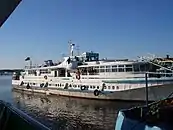 2½-палубный модернизированный теплоход «Поручик Ржевский» (экс ОМ-145) на Химкинском водохранилище у Северного речного порта в Москве