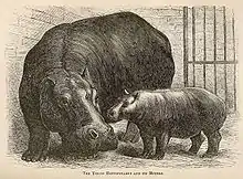 Аббас-паша впоследствии послал ещё одного бегемота в Англию, который прибыл в Лондон 22 июля 1854 года. Это была самка, которой дали имя Адела, и она стала подругой Обайша[9]. Прошло больше шестнадцати лет, прежде чем пара всё-таки произвела в феврале 1871 года потомство; их детёныш, однако, умер через два дня. Второй детёныш, родившийся в следующем году, также умер на четвёртый день после рождения, и только третьему, родившемуся 5 ноября 1872 года, удалось выжить. Это была самка, но сначала ей дали имя Гай Фокс. После того как смотрители заметили свою ошибку в определении пола, она была переименована в «мисс Гай».