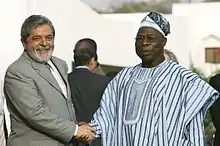 В начале 2000-х годах Нигерия стала играть более активную внешнеполитическую роль, приняв участие в критике авторитарного режима Роберта Мугабе в Зимбабве, международных миротворческих операциях, пресекающих гражданские войны в Сьерра-Леоне и Либерии. В 2004—2006 — председатель Африканского союза.
