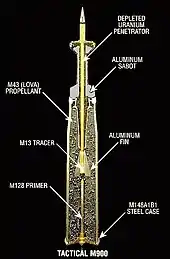Использование обеднённого урана в боеприпасах связано с его свойствами — высокой массовой плотностью и пирофорностью — благодаря которым снаряды с обеднённым ураном обеспечивают высокое бронебойное действие и вызывают существенные запреградные разрушения[2], что в итоге определяет их эффективность. В странах с развитой атомной промышленностью, располагающих накопленными запасами обеднённого урана, его использование в боеприпасах обходится относительно дешевле, чем использование других материалов.