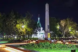 ![]() Обелиск Минину и Пожарскому со включенной подсветкой | |