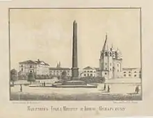 20 февраля 1818 года монумент был установлен в центре Красной площади, а год спустя Академия художеств объявила конкурс на проект обелиска с барельефами для Нижнего Новгорода. Победил проект А. И. Мельникова и И. П. Мартоса. А. А. Бетанкур предложил установить его в центре кремлёвского плац-парада, но в 1825 году было решено возвести обелиск на одной оси с военным Успенским собором. 15 августа 1828 года после военного парада Нижегородского гарнизона обелиск был открыт.