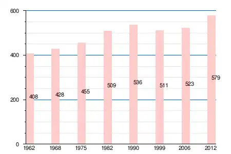 | 408 | 428 | 455 | 509 | 536 | 511 | 523 | 535 | 583 | 579 |