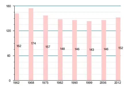 | 162 | 174 | 157 | 148 | 146 | 143 | 150 | 146 | 151 | 154 | 157 | 152 |