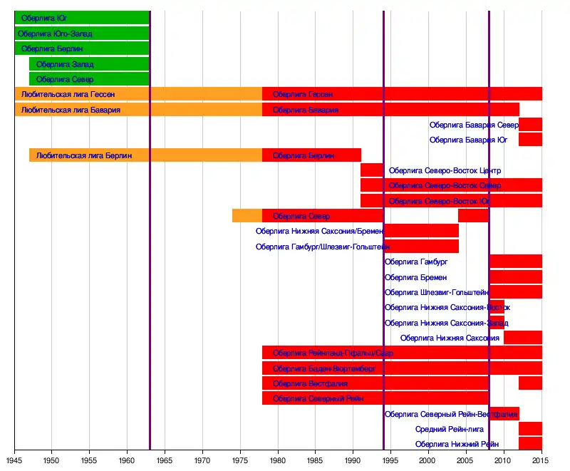 В 1994 году с введением Регионаллиги Оберлига стала второй любительской и четвёртой немецкой лигой.