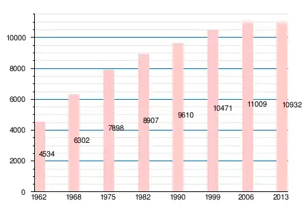 | 4534 | 6302 | 7898 | 8907 | 9610 | 10471 | 11009 | 10883 | 10689 | 10822 | 10932 |