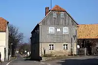 | 2 | Жилой дом с солнечными часами на фронтоне, конюшней и двусторонним двором | Wohnstallhaus eines Zweiseithofes, mit Sonnenuhr auf Giebelseite | Вторая половина XIX века | Oberuhna 9 | 09253108 | ![]() |
