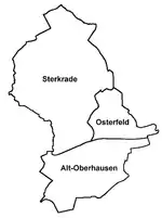 Своё название получил в 1847 г. как железнодорожная станция. Статус города Оберхаузен получил в 1874 г. В 1929 г. был расширен присоединением поселков Штеркраде и Остерфельд (нем. Sterkrade, Osterfeld). В апреле 1945 г. подвергался бомбардировкам союзной авиации.