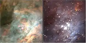 - Есть более близкие к Солнцу области H II, но они сформировались вокруг одиночных звёзд и не являются областями звездообразования.