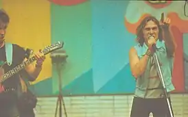![]() «Облачный край» на фестивале «Подольск-87». Лидеры группы Сергей Богаев и Олег Рауткин | |