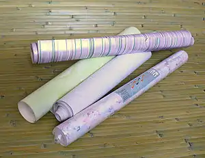 ![]() | Обои с уже нанесённым слоем клея, который активируется при намачивании. |