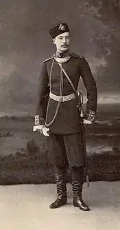 Окончил Пажеский корпус (1885), откуда выпущен был подпоручиком в лейб-гвардии Преображенский полк.