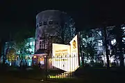 Возле театра возвышается стела с надписью: «„Борцам“ за коммунизм, что „борьбу“ познали».