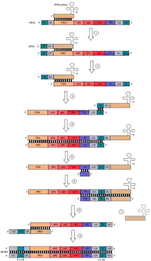 Обратная транскрипция — это процесс образования двуцепочечной ДНК на основании информации в одноцепочечной РНК. Данный процесс называется обратной транскрипцией, так как передача генетической информации при этом происходит в «обратном», относительно транскрипции, направлении.[1]