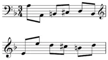 - квартсекстаккорд (или второе обращение трезвучия) — обращение с квинтовым тоном в нижнем голосе. Квартсекстаккорд обозначается цифрами 4 и 6 (или 6 и 4)[2]. В нём, как и в секстаккорде, крайние звуки образуют сексту, а признаком является положение чистой кварты в основании.