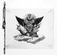 - Илл. 377. Знамя Мушкетёрского полка Обсервационного Корпуса, 1757 год // Историческое описание одежды и вооружения российских войск, с рисунками, составленное по высочайшему повелению : в 30 т., в 60 кн. / Под ред. А. В. Висковатова. — Т. 03.