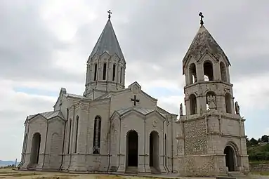 Обстрел собора Казанчецоц в 2020 году произошел 8 октября, за месяц до битвы за Шушу когда собор Святого Христа Всеспасителя (арм. Սուրբ Ամենափրկիչ մայր տաճար) города Шуша, известного как собор Казанчецоц (арм. Ղազանչեցոց, азерб. Qazançı), был дважды поражен ракетами, в результате чего был поврежден купол, а на потолке образовалась дыра от снаряда.[2][3][4][5]Армения обвинила ВС Азербайджана в обстреле.[6][7][8][9]