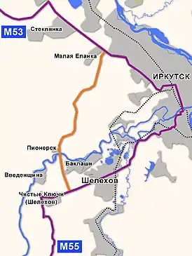![]() «Обход Иркутска» (оранжевый) на карте | |